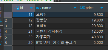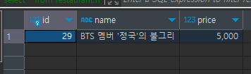 저는 해당 테이블에서 BTS 멤버 '정국'의 불그리 를 조회하려고 합니다.