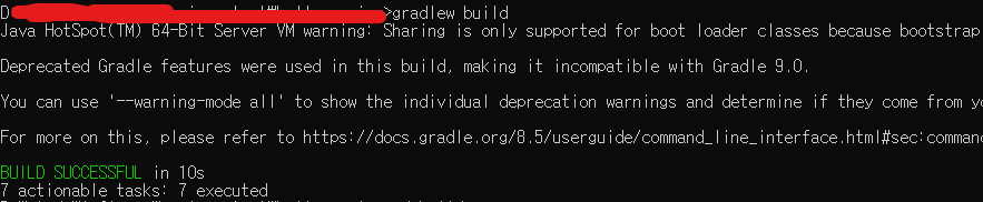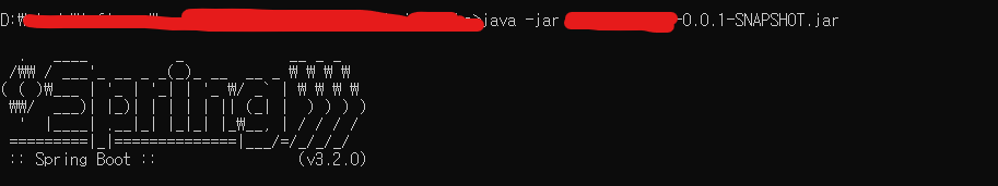6. 해당 디렉토리에 프로젝트명이 포함된 이름으로 만들어진 jar파일이 있을텐데 해당 파일을 실행하면 서버가 켜집니다.