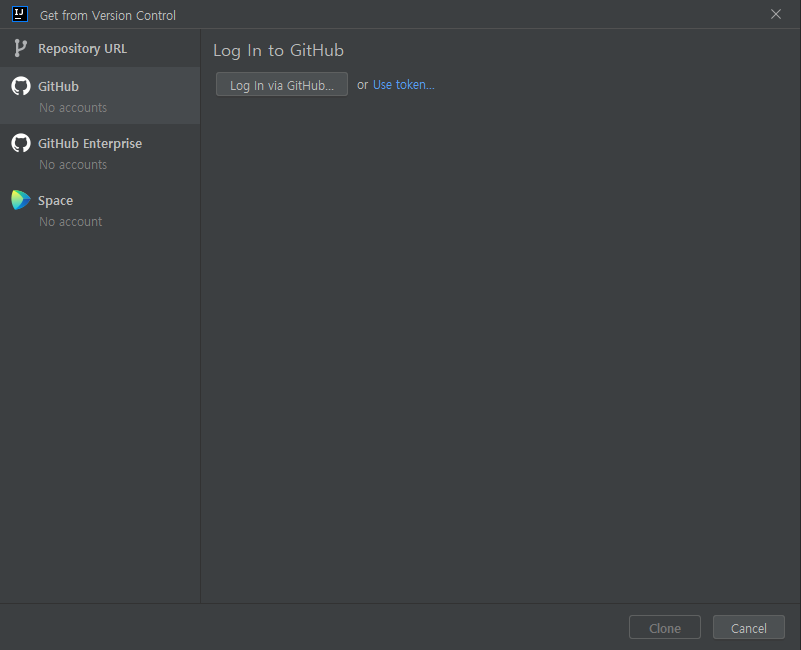 3) Authorize in GitHub 클릭 -> GitHub 로그인 후 Authorize JetBrains 클릭(캡쳐 못했습니다ㅠ ㅠ)