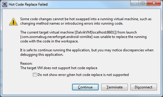hot code replace(HCR)는 이클립스 자바 디버거 동작 중에 새로운 클래스 파일의 변경이 있으면 그 변경된 파일을 자동으로 교체하는 디버깅 기술이라 한다.