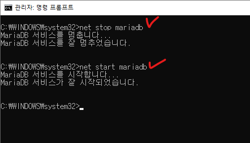 mariaDB 서버를 끄고 싶다면 -> net stop mariadb