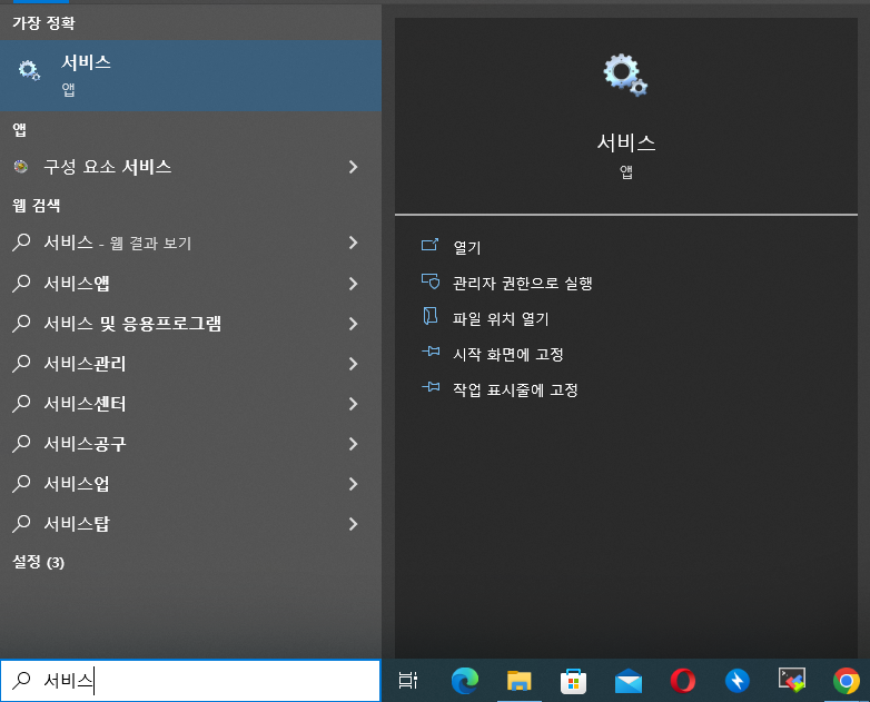 윈도우(키보드) 버튼 클릭 후 -> '서비스'를 검색해서 껐다 켰다 할 수 있습니다.